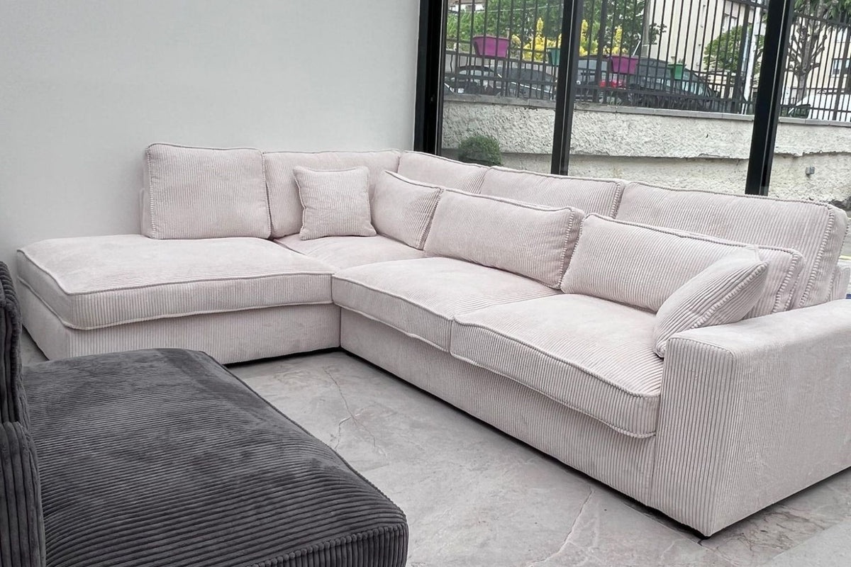 Canapé D’angle gauche ou droite Lexus Côtelé Gris Anthracite ou Blanc Cassé